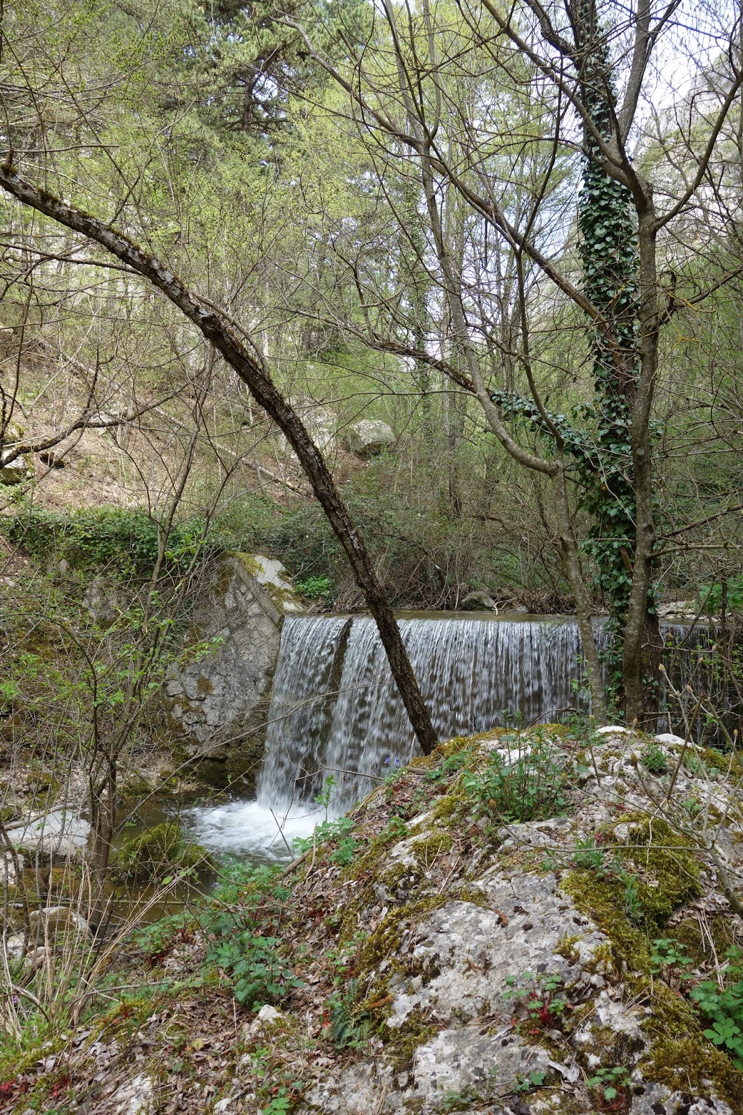Nous voilà donc dans les gorges de Celano, au sein du parc naturel Sirente Velino. Un sentier de grande randonnée longe la rivière. Le bois est en fleur, et partout autour de nous des éclats de couleur interrompent le monochrome vert. Magnifique !